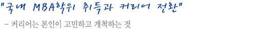 필자는 기계공학을 전공하고, 미국으로 건너가 같은 전공으로 조금 더 공부를 한 소위 말하는 '공돌이'였다. 졸업 하면 자동차 회사에 입사해, 엔진 설계 분야를 다루고 싶다는 목표도 이뤘다. 하지만, IMF 외환위기를 겪으면서 상황이 달라졌다. 밤샘해서 만들고, 설계했던 많은 프로젝트가 중단되고, 급여도 깎였다. 막막했다. 하지만 걱정만 할 수는 없었다. 이런 상황을 주도적으로 돌파하고 싶었고, 막연히 그런 분야가 경영 컨설팅이 아닐까 하는 생각이 들었다. 다행히 컨설팅 회사로 이직했고, 역시 뛰어난 사람들과 재미있게 일할 수 있었다. 하지만 경영학과 출신도 아니고, 일찍부터 컨설팅에 관심을 두고 고민했던 상황도 아니었기 때문에 하면 할수록 한계가 드러났다. 지식에 대한 갈망이 생겼다. 밤샘 해도 좋은 체력과 열정만으로는 부족한 능력을 채울 수가 없었다. 국내 MBA 진학으로 얻은 것 첫째는 우수한 교수진과 프로그램을 통해 배운 지식과 문제해결 능력이다. 내가 부족하다고 생각했던 유통, 브랜드, 마케팅, 전략, 국제경영, M&A 등을 국내 최고 수준의 교수들로부터 배웠다. 그들이 가진 지식과 경험이 나에게 큰 도움이 됐다. 또 수많은 케이스 스터디를 통한 사고력과 문제 해결 능력도 키웠다. 둘째는 롤 모델이 될 수 있는 동기들과의 만남이다. 회사를 경영하는 사장, 나와 같은 컨설팅 분야에 근무하는 컨설턴트, 기업의 전략기획실에 근무하는 사람 등 다양한 산업군의 다양한 직무에서 인정을 받고 있는 동기들과 만난 것이다. 그들과 함께 수업을 듣고 토론하고 프로젝트를 진행하면서 일을 잘하는 사람들의 업무 스타일과 문제 해결 능력, 문제에 접근하는 방식, 결과를 만들어내는 능력 등을 배웠다. 무엇보다 그들의 열정과 모든 일에 접근하는 태도(attitude)가 큰 귀감이 됐다. 당연히 네트워크는 덤이다. 마지막으로 쉽지 않던 MBA를 끝내면서 얻은 자신감과 교수님, 동기들을 통해 배운 것은 겸손과 리더십이었다. 이렇게 국내 MBA는 필자가 원하는 방향으로 커리어를 전환하고 우수한 성과를 내는데 밑거름이 됐다. '자기계발 + 국내 MBA' 커리어 전문가로서 국내 MBA를 준비하고 있는 분들에게 `커리어는 본인이 고민하고 개척하는 것`이라는 점을 말하고 싶다. MBA에 도전했다는 것만으로도 충분히 열정이 있는 사람이고 자기 관리와 계발을 충실히 이행하는 실행력 있는 사람인 동시에 본인이 커리어를 주도하는 사람이다. |